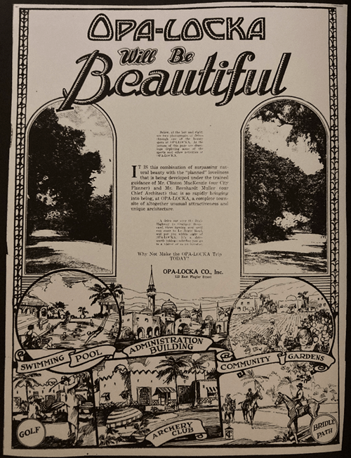 On Tequesta, and later Seminole, lands was opa-tisha-wocka-locka, or “high ground amid the swamp on which there is a camping place.” Then the Roaring Twenties and great Florida Land Boom came, and it was swallowed up by a 120,000-acre purchase by the Curtiss-Bright Corporation, which carved from its holdings three cities: first Hialeah and then Country Club Estates (now Miami Springs). The final development of Missouri cattle rancher James Bright and “The Father of Naval Aviation,” Glenn Curtiss, was Opa-locka.