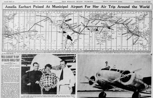 What was called Glenn Curtiss Field would grow into Miami Municipal Airport. In 1937, Amelia Earhart continued her infamous flight from Municipal Airport without her trailing antenna, citing weight issues. On July 2, Earhart and her navigator disappeared over the Pacific. “Municipal Airport” was changed to “Earhart Field” in 1947, but it closed in 1959 and was converted to a switching yard by the Seaboard line.