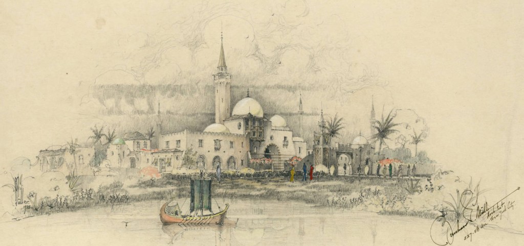 Curtiss retired from aviation to dabble in real estate, commissioning architect Bernhardt Muller to design a city inspired by the Arabic folk tales in One Thousand and One Nights (though the source of the inspiration is disputed). Dedication to this theme transcended architecture; when Seaboard Air Line’s Orange Blossom Special arrived, a band of horsemen in Arabian-themed garb halted the “Great Iron Horse” with a proclamation from “The Grand Vizier of the Empire of Opa-locka,” G. Carl Adams (President of the Opa-locka Company). This event marked the height of the city’s popularity, when it embodied the dream it was advertised to be.